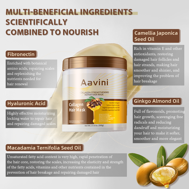 Aavini Collagen Repair Hair Mask, Hair Restoration, Deep Nourishment, Improves Elasticity & Reduces Breakage, Ideal for Fragile, Chemically Treated Hair, 500g