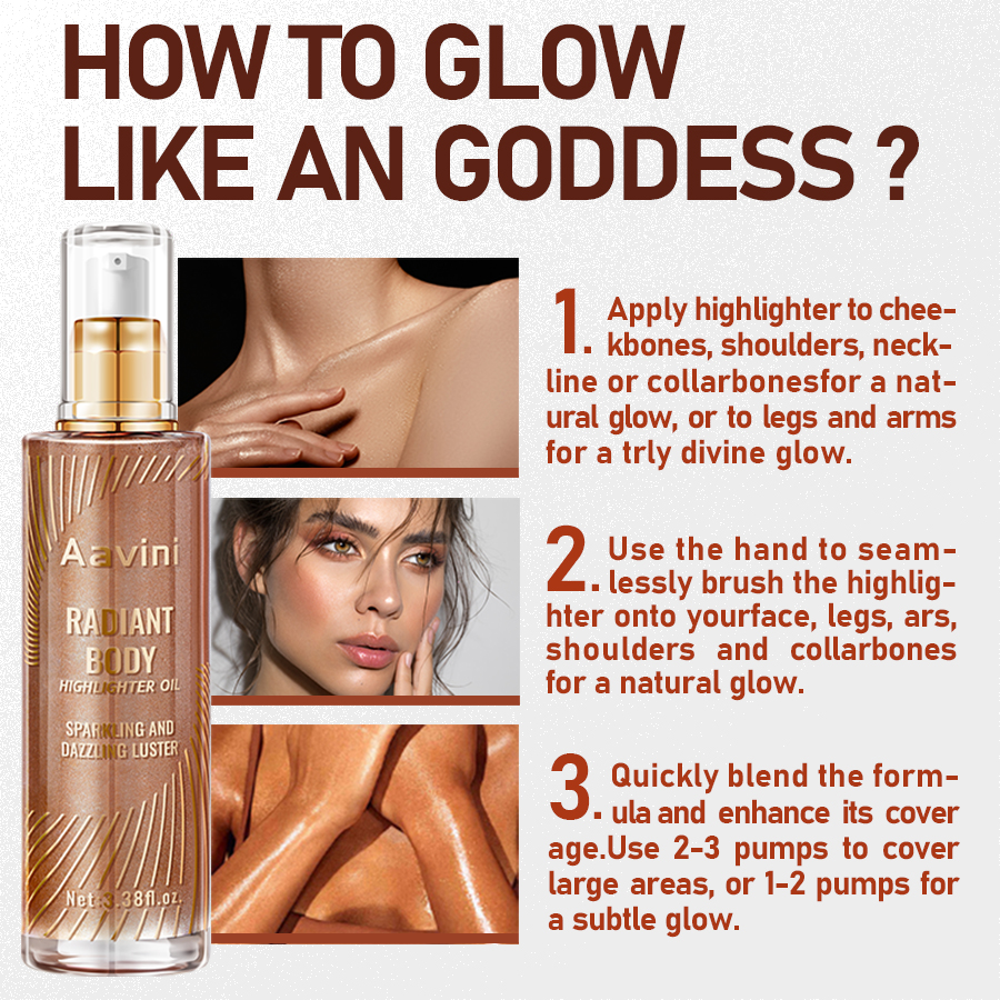 Aavini Glowing Body Highlight Oil, Radiant Shine, Rich Plant Extracts & Oils, Silky Soft Skin, 100ml