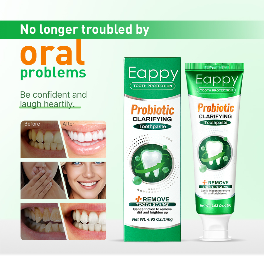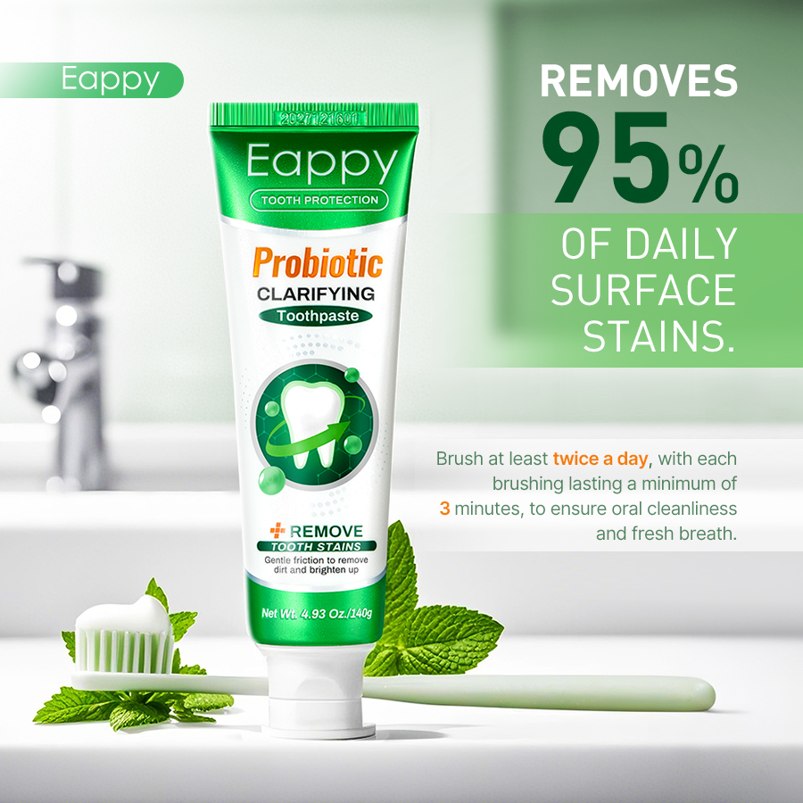 | How to Use: After brushing your teeth with your regular toothpaste, apply an appropriate amount of Eappy Probiotic Whitening Toothpaste onto your toothbrush. Gently brush your teeth for 2-3 minutes, making sure to cover all surfaces. Rinse thoroughly with water for fresh, clean breath. Usage Scenarios: