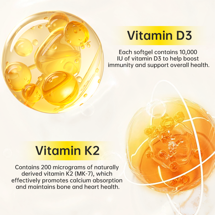 - High content of vitamin D3: Each soft capsule contains 10,000 IU vitamin D3, which helps enhance immunity and support overall health.